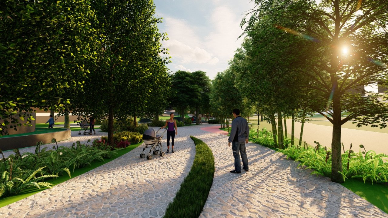25.766 m² toplam alan, botanik bahçe, oturma alanları, çocuk parkları ve yürüyüş alanlarından oluşmaktadır.