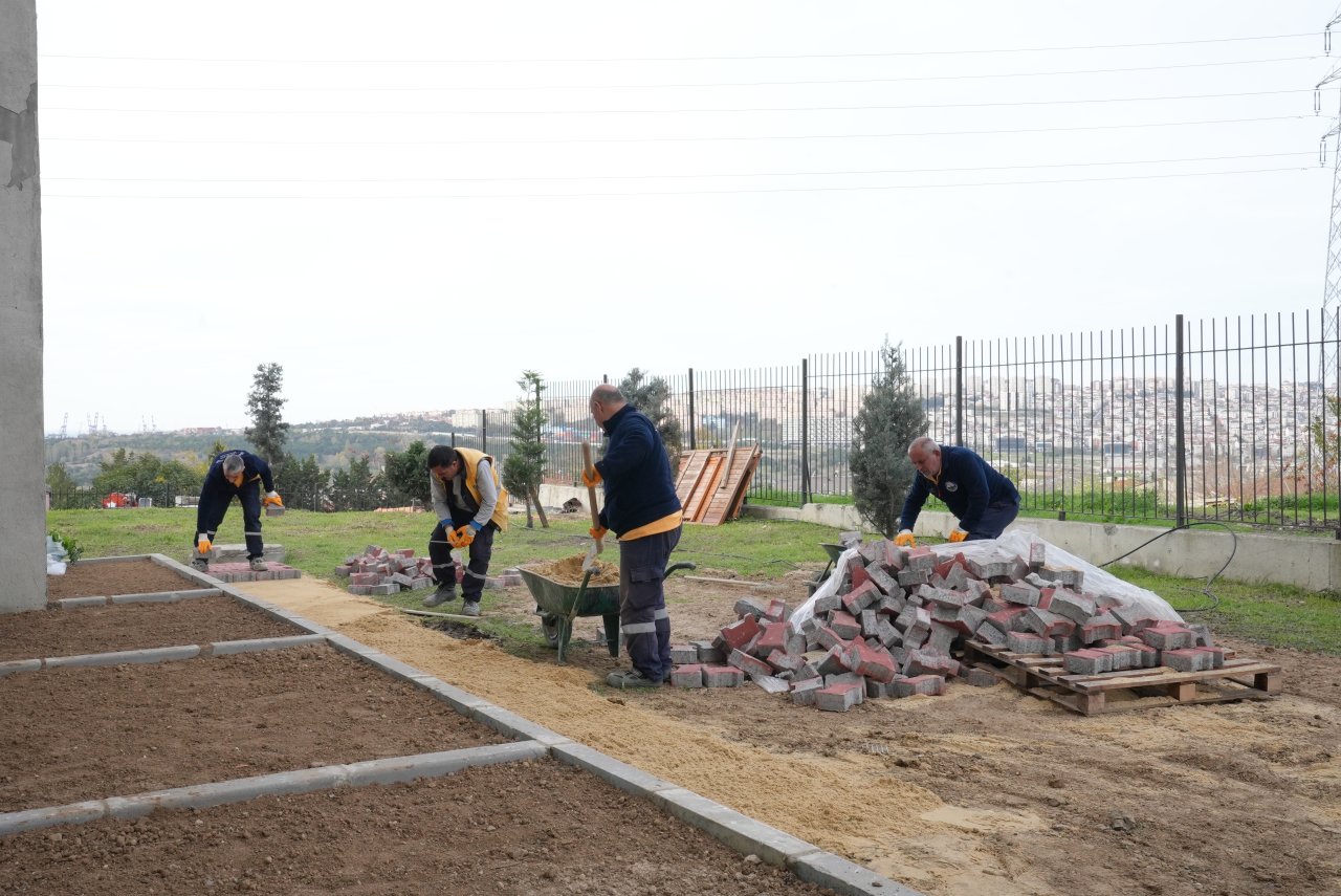 Zemin boyama, hobi bahçesi kurulumu, yol yapımı, boyama, çim biçme, toprak serimi ve kapı onarımları yapıldı